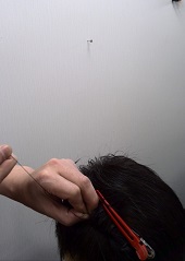 特殊な糸を使い頭の周囲に沿って自毛に結び、製品を装着する土台を作ります。